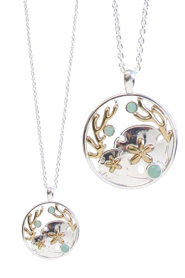 Sealife Theme Sea Glass Sand Dollar Pendant Necklace – Teal Turquoise